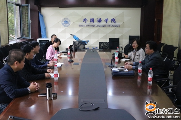 崔校平向来访人员介绍了大学英语教学情况,从通用英语到通用学术英语的角度介绍了学术英语教学与大学英语教学改革,结合山东大学英语教学的改革成果,详细介绍了大学英语实行分级教学的课程体系建设、课程设置、教学管理、学分建设、教学评价等方面的情况,分层次、分类别教学,让学生应选择与自己相应的课程级别。会上,马刚就大学英语教学管理、大学英语教学改革、学术英语教学这几个方面与崔校平展开了交流与探讨。