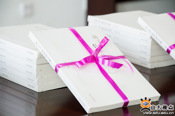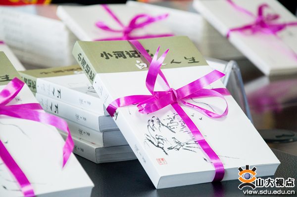 蔺子荣教授向经济学院捐赠了他的两部著作《小河记忆·白水人生》和《蔺子荣经济论文选》。他回忆了自己在山东大学的求学和工作经历,对经济学院的发展历程作了回顾,并希望学院能继续将优良传统发扬光大,办得越来越好。