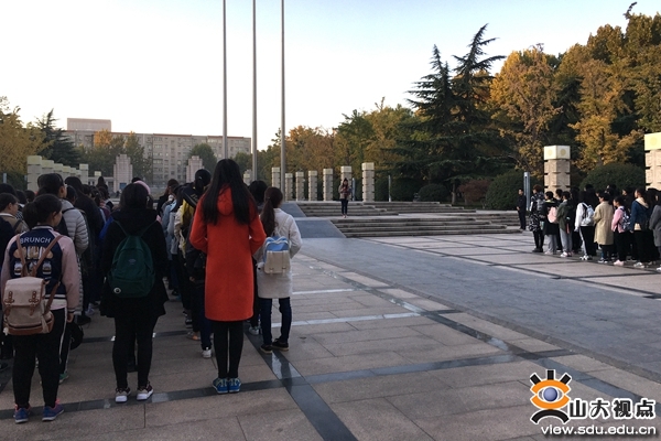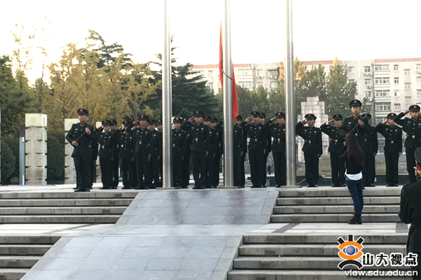 清晨,同学们迎着朝阳,满怀期待,一大早就来到广场上等待。集合完毕后,出旗仪式正式开始。口令既出,标兵就位,英姿飒爽的国防生们迈着整齐、坚定的步伐,护送鲜艳的五星红旗入场。伴随着铿锵的中华人民共和国国歌,在场师生向国旗行注目礼,注视着国旗冉冉升起。学生代表、山东大学“成仿吾英才班”第一期学员、经济学院学生王昊晨进行了国旗下的讲演。她讲到,习近平总书记在党的十九大报告中作出中国特色社会主义进入新时代的重大战略判断,提出了两个阶段建设目标,即2020年到本世纪中叶分为两个阶段,奋斗两个十五年,把我国建设成富强、民主、文明、和谐、美丽的社会主义现代化强国的新目标;结合十九大的新形势和新要求,她号召同学们发扬山东大学崇实求新的精神,勇于担当,志存高远,坚定信念,牢记“为天下储人材,为国家图富强”的办学宗旨,求无境之学、养浩然正气,树立家国情怀,勇做时代的弄潮儿,积极投身社会主义现代化建设的伟大事业中去,在实现中国梦的生动实践中放飞青春梦想。