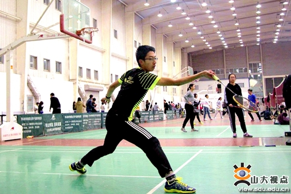 本次比赛男单、男双、女单、女双、男女混合双打五个项目同时举行,采取局分15分、三局两胜的淘汰赛制。在短暂的热身适应场地后,比赛正式开始。男子单打赛场,双方球员势均力敌,互不相让。强劲有力的扣球,步伐灵活的救球以及射程远的吊球层出不穷。混合双打中,男女配合默契,宛如一人,分工明确。女生的灵活机敏与男生的高超技巧得到了完美结合,一攻一守,环环相扣,整场比赛节奏明朗,引人入胜。男女选手的出色表现给观众们留下了深刻印象,赢得了一片喝彩。最终,土建与水利学院、 材料科学与工程学院、控制科学与工程学院、电气工程学院代表队胜出进入决赛环节。