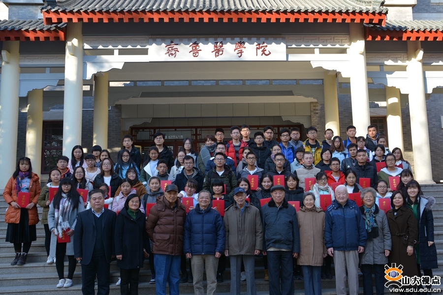 会上,龚瑶琴对奖学金评选流程、奖学金创立14年来的资助情况、往届获奖优秀学子目前学习工作及生活现状进行了汇报。她对校友的大爱和信任表示感谢,表示1951级校友的爱心和奉献不仅对学生、也对她产生了深刻的影响,她鼓励学子们以获得奖学金为契机,将博爱传播,以感恩之心努力学习,以优异成绩回报校友,回报社会。李玉蓉宣读了第十四届“山医51级校友奖学金”获奖学生名单。经评审委员会评审,今年共产生了35名获奖学生。学院领导及校友代表为获奖学生颁奖,并鼓励他们发奋图强努力学习。来自基础医学院和临床医学院的3位奖学金获得者代表先后发言,对校友们表达了感激之情,表示要把奖学金化作今后不竭的动力,完成新的征程,并将把齐鲁医学精神一直传承下去。1951级校友代表徐功立以“团结友爱,共同进步”“情系母校,不辞辛苦”“继往开来,厚德载物”为主题,对1951级校友及奖学金情况进行了回忆和总结。他回忆了当年艰苦的求学环境下同学们依然团结一致、共同进步的情形,感恩在奖学金设立的过程中,以老班长为代表的各位同窗所作出的贡献,表达了校友们对学弟学妹们的未来医学之路寄予的厚望。赵福昌回顾了“山医51级校友奖学金”设立以来,校友们对学院、对学生的关心情况,对1951级校友表示感谢。他希望同学们以1951级校友为榜样,克服困难,积极进取,将医学大爱精神继续传承和发扬下去。同学们还以1951级校友奖学金资助优秀困难学生为主题,自编自演了感恩情景剧“齐鲁情传”,引起全场共鸣,将颁奖活动推向高潮。