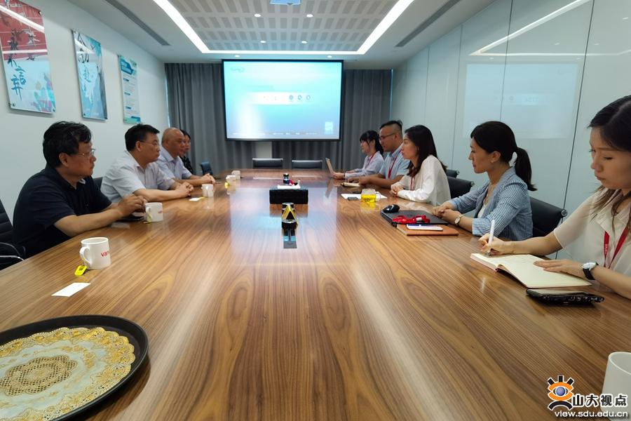 [本站讯]为进一步促进与企业的对接合作,7月6日下午,数学学院院长陈增敬一行受邀赴济南万科中心参观访问。参访中,陈增敬一行了解了万科在济南的发展现状,并参观了入驻万科中心的中商惠民等独角兽企业和万科中心展示大厅。座谈会上,陈增敬介绍了山东大学数学学科的发展历程和国家应用数学中心的成立背景,从国家战略层面和推动地方社会经济发展层面阐述了应用数学中心成立的意义和未来发展规划。随后,双方就国家应用数学中心成果转化基地落户科苑大厦事宜进行了深入交流。