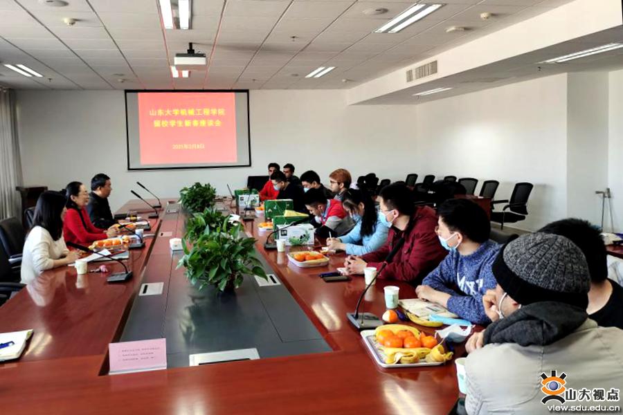 [本站讯]2月8日,机械工程学院看望慰问春节留校学生,并举办留校研究生和留学生新春座谈会。学院党委书记刘杰向大家致以新春的问候,祝福大家新春快乐,身体健康、学业有成。学院为每位春节留校学生发放了新春礼品,让同学们充分感受到来自学院的关爱与温情。学院党委副书记吕伟、刘玥等参加活动。