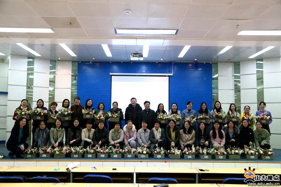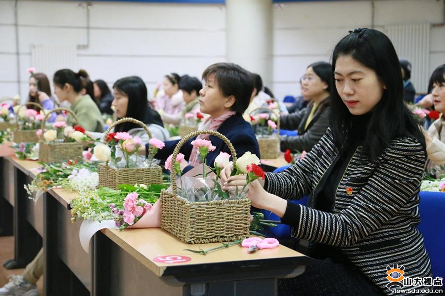 活动通过“击鼓传花”的方式选出六名幸运教师上台向大家展示自己的花艺作品,每一篮展示的作品都令人赏心悦目,各具特色,都得到了花艺老师的赞扬与肯定。仇道滨为活动的幸运教师颁发礼品,并为“山东大学最美家庭”荣誉称号获得者武蕾老师家庭颁发证书和奖品。本次活动不仅让大家学到了花艺的相关知识,更丰富了教职工的精神文化生活,让广大女教师们在感受美、欣赏美、创造美的过程中度过了一个愉快的“三八”国际劳动妇女节。