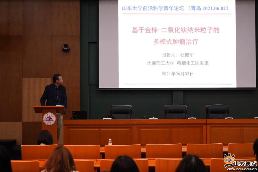 [本站讯]6月2日下午,大连理工大学杜健军教授做客前沿科学青年论坛,作了以“基于金棒-二氧化钛纳米粒子的多模式肿瘤治疗”为题的讲座,介绍了肿瘤治疗的现状,分析了光疗技术的应用难点和面临的科学问题并介绍了其课题组近期开发的一类具有光催化产氢性能的金棒-二氧化钛纳米粒子材料,在多模式肿瘤治疗中取得的研究进展。