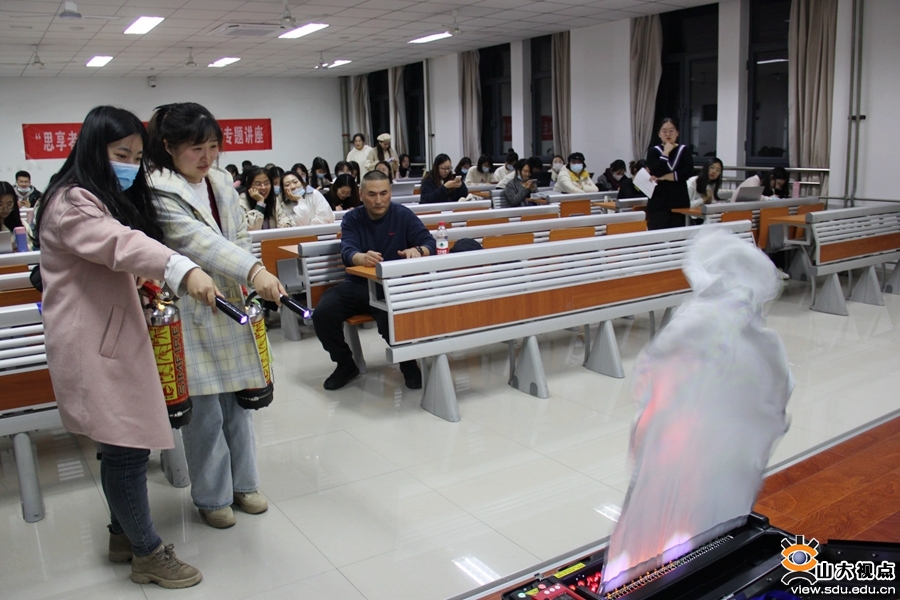 [本站讯]为增强同学们的个人防护意识,共筑和谐安全的校园环境,近日,政治学与公共管理学院举行“思享者”研究生学术沙龙活动暨安全教育专题讲座,青岛校区保卫处李志强及孙垚等工作人员结合典型案例,从防偷防盗、防电信诈骗以及防实验室、宿舍火灾等方面进行讲解,生动形象地向大家传达了安全教育知识,并现场展示消防器材模型,开展消防模拟演练,进一步增强了同学们对消防知识的学习。