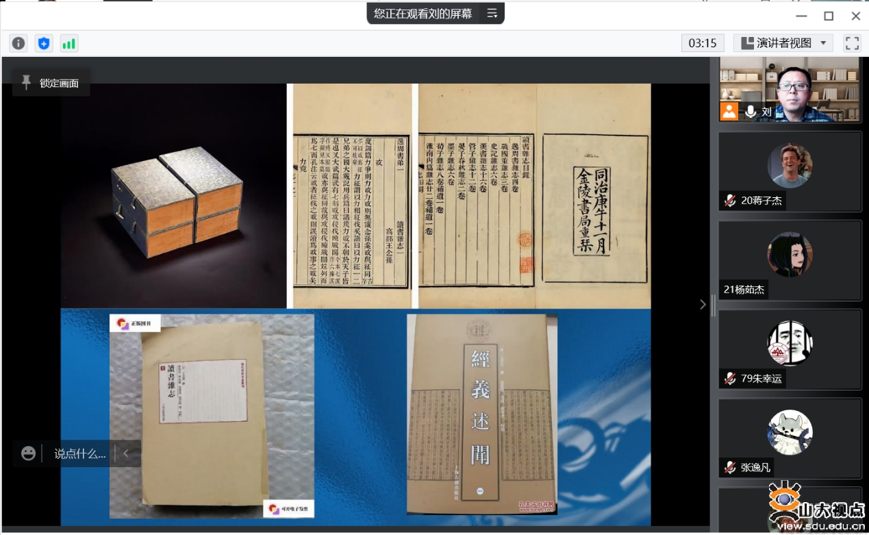 [本站讯]4月16日晚,文学院以线上会议的形式举办第五期山大文苑沙龙“穿越语词的密林——汉语学习与论文写作漫谈”。学院刘祖国副教授作为主讲嘉宾,介绍在汉语语言类课程学习中的相关问题,讲解查阅利用重要工具书的方法,研讨潜在的科研选题。他着重探讨了论文写作的相关问题,将论文写作分为三个步骤:选题、研究、表达,并分别阐释了这三个方面应注意的问题以及解决方法,讲述过程中引经据典,讲解生动形象,贴近实际,寓教于乐。此外,在互动环节中,同学们踊跃提出自己的思考,以及研究中遇到的难题,刘祖国就同学们的疑惑逐一进行讨论交流,为学生排忧解难。本次活动共有60余名师生参与。