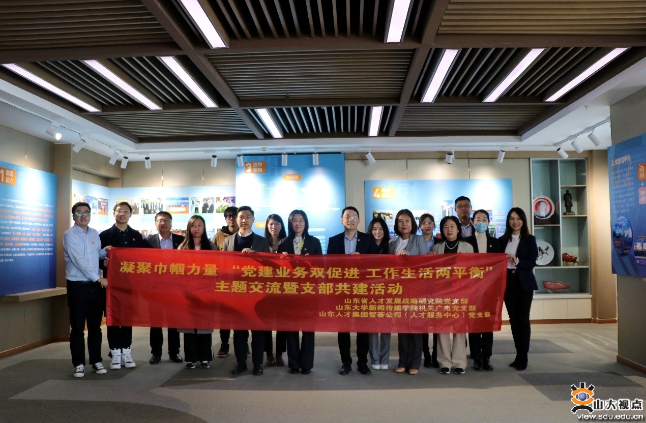 [本站讯]3月8日上午,在庆祝“三八”国际妇女节之际,新闻传播学院机关广电党支部与山东人才集团智荟公司(人才服务中心)党支部、山东省人才发展战略研究院党支部联合开展“党建业务双促进 工作生活两平衡”主题交流暨支部共建活动。
