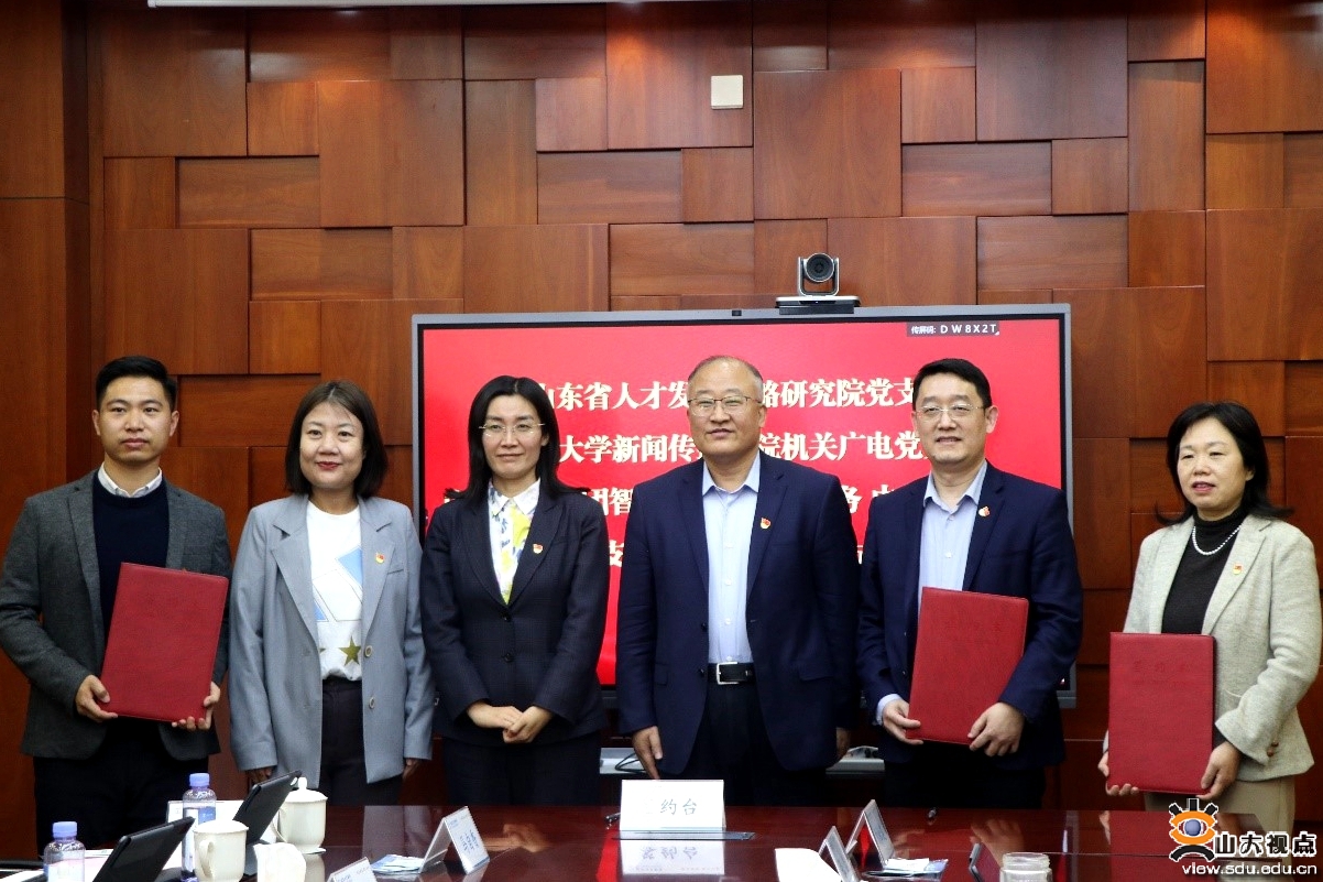 随后,大家围绕如何进一步发挥巾帼精神,高质量开展工作进行探讨学习。山东省人才发展战略研究院党支部书记胡文安、山东大学新闻传播学院机关广电党支部书记王智洁、支富华分别介绍了所在支部的基本情况并签署了支部共建协议,与会人员围绕“党建业务双促进 工作生活两平衡”进行了座谈交流与研讨。