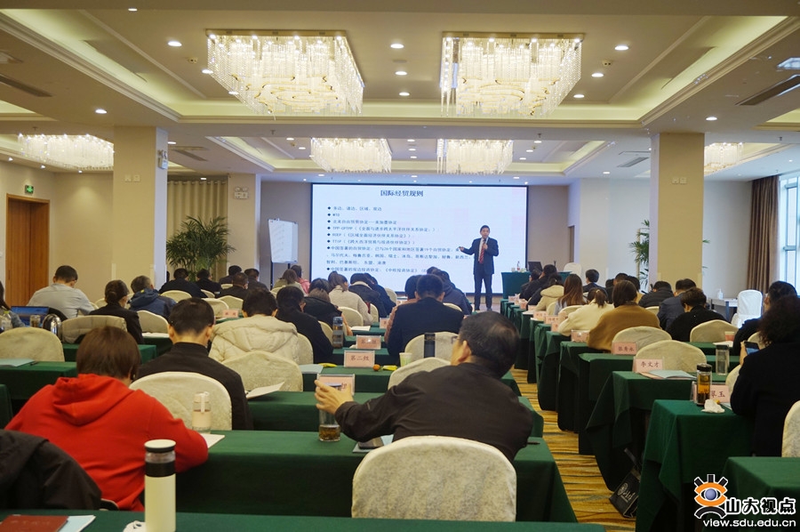 [本站讯]由山东省商务厅主办、山东大学山东发展研究院承办的全省开放人才综合研讨班于2月27日至3月18日在威海举行。法学院副教授迟德强作题为“对标国际经贸规则,提升法治化营商环境”的专题讲座。