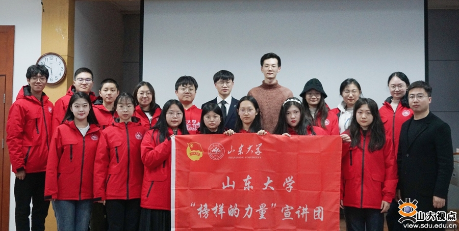 [本站讯]为进一步学习宣传贯彻党的二十大精神,落实立德树人根本任务,4月4日,校团委组织的“大手拉小手”榜样的力量进校园活动在山东大学附属中学举办。山东大学附属中学副校长庄增臣出席活动并致辞。庄增臣,山东大学附属中学团委书记、政教处主任张庆举,山东大学附属中学高中段政教主任刘文冬,山东大学团委西部计划项目办主任马海波共同为宣讲团授旗。山东大学榜样的力量获奖者陈允隆、赵灵虎分别向同学们分享了学习经历及心得感悟。山东大学第25届研究生支教团副团长吴晋一主持活动。山东大学附属中学学生和山东大学第25届研究生支教团参加活动。