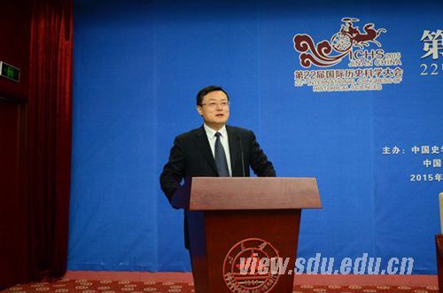 即将召开的第22届大会如果没有山东省政府的支持是不可能举办的,非常感谢你们的帮助和你们的支持。是你们和中国社科院的合作、中国史学会的合作以及山东大学的合作使得我们这次大会成为可能。我也非常希望感谢张荣校长、感谢方辉院长(历史文化学院院长、组委会秘书长)。我要感谢山东大学整个筹备团队,感谢你们高效的工作。同时要感谢曹升元教授,他是22届大会组委会的副主任。