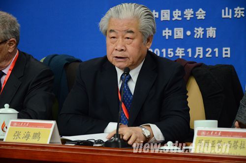 [“山大视点”网站] [张海鹏]:谢谢你的关心。我想国际历史科学大会在中国召开,世界各国有几千位历史学家到中国来,他们有几百位会在会场上提出自己的论文,提出报告,有更多的学者会参与讨论。我觉得我们中国学者一定会有不小的数量来参与这次会议,我们这些学者可以和世界各国的学者彼此交流,可以了解、学习他们的研究方法,可以了解他们是怎么样认识各种不同的历史问题,这对于我们自己对历史学的思考,一定会有帮助。我想这就是我们争取在中国、在济南召开这次国际历史科学大会的一个基本想法。要使中国学者更多了解国际世界各国历史学家他们在想什么,他们在研究什么,他们关注的方向是什么,他们的研究方法是什么。我们从当中可以有哪些收获,有哪些领会,怎么样来推动自己的历史学研究,我想这是一个基本的意义。[2015-01-21 11:26:49]