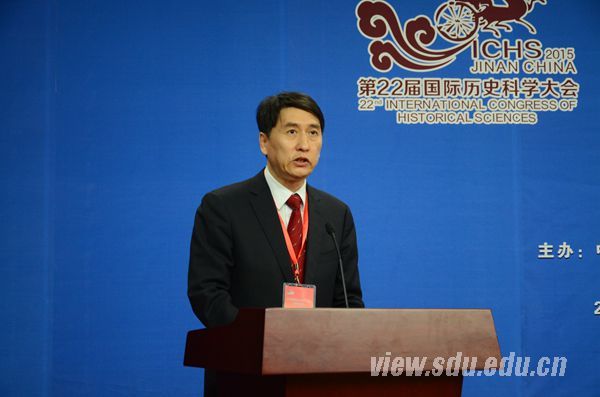 环顾世界所有的国家,恐怕没有任何一个国家像我们这样完整保存了煌煌的24史。所以历史科学对我们来讲是非常重要的传统学科,崇经重史是中华民族的传统。但是像张海鹏教授说的那样,我们的历史研究虽然有很深刻的积淀,却未必让西方人了解,因为有语言、文化的原因。但是由于最近30年来中国崛起了,所以西方人、外国人、全世界人关注中国了,除了关注中国现实之外,也应该关注中国的历史。所以,今天为什么在中国召开世界历史科学大会?首先是因为中国崛起了。第二,为什么在山东召开历史科学大会?我个人认为除了刚才说的技术性问题之外,还有一个很重要的原因是山东是孔孟故乡、是中国传统文化中主流文化的发祥地。第三,为什么在济南召开?除了房价便宜之外,我觉得还有一个原因,是因为山东大学在济南,山东大学有文史见长的传统。作为这次大会的承办者,山东大学为此而感到非常荣幸,我们也觉得责任在肩。因此,我们一定要把这个大会办成一个空前规模的历史盛会。我们想通过这个会议,让全世界的人了解我们中国的历史研究,也想通过这个会议,学习全世界人民在历史研究方面的方法、手段和模式。通过这个,来实现我们共同的进步。