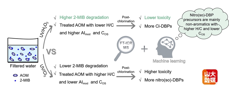 [本站讯]近日,环境科学与工程学院徐杭州副教授团队在高级氧化处理高嗅水及控制消毒副产物领域取得新进展。相关研究以“Investigation of nitro(so)- and chloro-disinfection byproduct formation mechanisms after UV/Cl2and UV/H2O2oxidation of 2-methylisoborneol in the presence of algal organic matter”为题发表于环境领域国际顶级期刊Water Research(2025.124616)。学院硕士研究生李思宏为论文第一作者,徐杭州副教授为通讯作者,山东大学为第一完成单位和独立通讯单位。