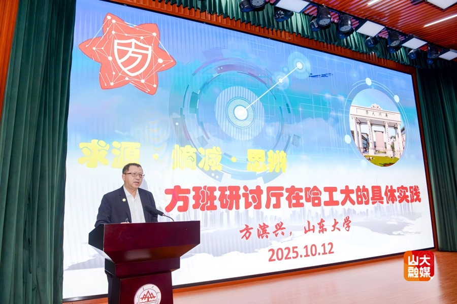方滨兴院士做客“鳌山讲坛”,作了题为《求源熵减思辨——方班研讨厅在哈工大的具体实践》的主题报告。方滨兴院士阐述了“方班研讨厅”这一创新教学模式的创立背景和发展历程。他表示,方班研讨厅的核心要素是“求源、熵减、思辨”,“求源”是指学生在学习过程中要知其然并知其所以然,通过输出倒逼输入,深化对知识的理解和掌握;“熵减”是一种归纳总结的能力,通过做减法和乘法,将复杂问题简化,提炼出核心要素;“思辨”强调批判质疑和形成创新观点,通过提出问题、质辩和形成新观点,培养学生的创新思维能力。