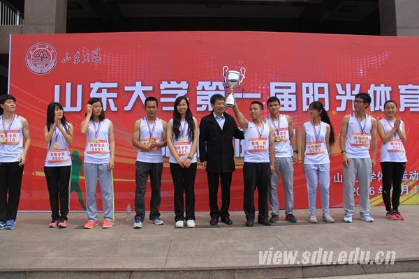 [本站讯]5月15日,山东大学第一届阳光体育校园健身跑比赛在兴隆山校区举行。经过激烈角逐,物理学院代表队获得比赛冠军,管理学院代表队和化学院代表队分别获得亚军和季军。山东大学副校长胡金焱致开幕辞,并鸣响发令枪。 学校学工部、体育学院有关负责人出席比赛开幕式,全校23个学院的240余名学生参加了比赛。比赛中,各学院选派出的10名运动员依次接力健身跑,每人围绕兴隆山校区的比赛跑道进行2公里比赛,10人共同完成20公里的赛程。接力过程中,女生是单数棒次,男生是双数棒次,用绶带作为接力介质,参赛队员需要全程佩戴绶带,以最后一名运动员通过终点的时间为最终成绩。经过激烈角逐,物理学院代表队脱颖而出,以1小时07分37秒36的成绩获得比赛冠军。 本次比赛由山东大学体育运动委员会主办,得到了学校党委、校长办公室,本科生院,学工部,兴隆山校区管理办公室,校团委,校医院以及马拉松爱好者协会等部门的大力支持。比赛积极响应国家强化学校体育、促进学生身心健康全面发展的要求,进一步推动了学校阳光体育运动的广泛开展。