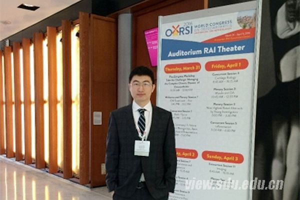 [本站讯]近日(荷兰当地时间3月30日至4月3日),2016年度国际骨关节炎研究协会(Osteoarthritis Research Society International, OARSI)在阿姆斯特丹国际会议中心召开会议,山东大学医学院博士生蔚建鲁在会上获得青年学者奖(Young Investigator Award)。