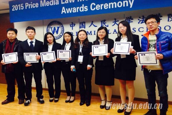 法学院代表队2013年曾获得中国赛区冠军,2014年获得亚太赛区第三名,截止今年,山东大学代表队是唯一连续三年取得亚太赛区国际轮参赛资格的高校。比赛得到张晏瑲教授的悉心指导以及法学院的大力支持。同学们的优异表现在国际平台上展现了山东大学法科学子的扎实功底和职业素养,是法学院国际化进程的显著成果。