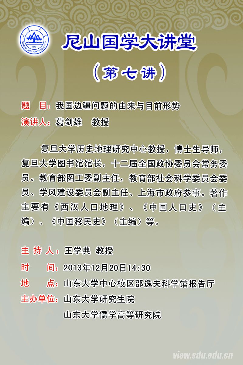 12月20日:“尼山国学大讲堂”第七讲
