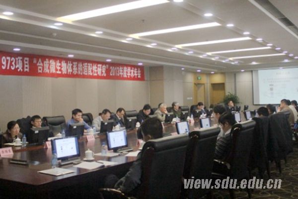 [本站讯]近日,973项目“合成微生物体系的适配性研究”2013年度学术年会在山东大学学术交流中心举行,来自中科院、科技部、清华大学、山东大学、上海交通大学、北京化工大学、解放军301医院、华东理工大学等近十家单位的项目专家及相关部门领导参加了会议。会议由中科院上海生科院植生所赵国屏院士主持。会议旨在进一步做好973计划项目“合成微生物体系的适配性研究”的组织实施,加强项目内外的交流与合作,促进合成生物学研究成果的应用推广。