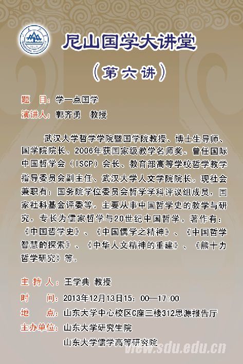 12月13日:“尼山国学大讲堂”第六讲