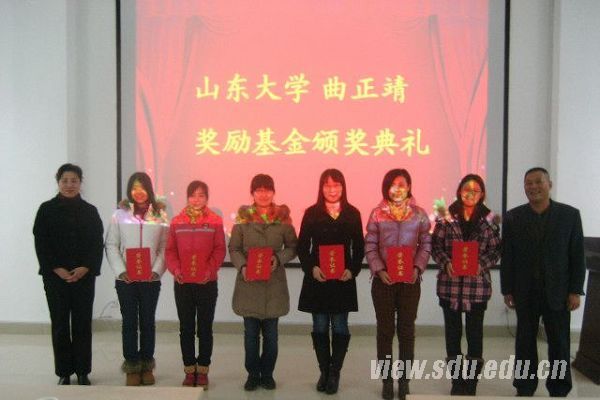 李士保宣读了首次曲正靖奖学金获奖名单,并介绍了曲正靖奖学金的设立、基金管理以及奖学金评定办法。瑞景房地产有限公司负责人在致辞中对获得奖学金的学生表示祝贺,并讲述了自己设立此奖学金的初衷以及生活经历。他希望通过设立奖学金资助广大莘莘学子更好的完成的学业,并期望广大学生在学成之后,能积极回报社会。王永杰希望获奖学生珍惜荣誉,把获奖作为一个新的更高的起点,不断增强思想道德修养,坚持严谨求学的态度,提高自身的创新和实践能力,为民族、社会贡献力量。获奖学生代表、2010级硕士研究生王金娜在发言中向山东瑞景房地产有限公司表示感谢,向辛勤培育山大学子的各位领导和老师表达了崇高的敬意,并表示在今后的学习中,会刻苦钻研,努力探索,学习新知识,掌握新思想,不断用科学文化知识武装自己的头脑,继承与发扬既有的优良传统,潜心苦读,勇于开拓,为振兴中华、报效祖国而努力奋斗。学院团委有关负责人、有关研究生辅导员,以及部分研究生与本科生学生代表参加了颁奖仪式。