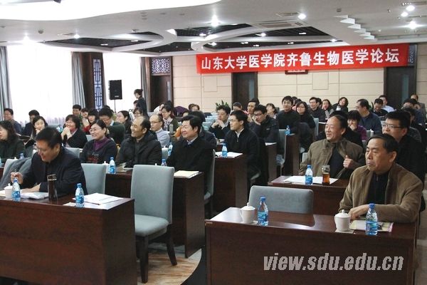 [本站讯]为促进各学科间的学术交流,实现优势互补、资源共享,增进教师间的合作,12月22至23日,医学院举行了齐鲁生物医学论坛。齐鲁医学部常务副部长陈哲宇,齐鲁医学部副部长、医学院副院长孔北华,齐鲁医学部组织人事处处长王秋生,齐鲁医学部副部长、医学院院长龚瑶琴,院党委书记陈鑫等新一届医学院领导班子成员、医学院教授及部分副教授共70余人参加了论坛。