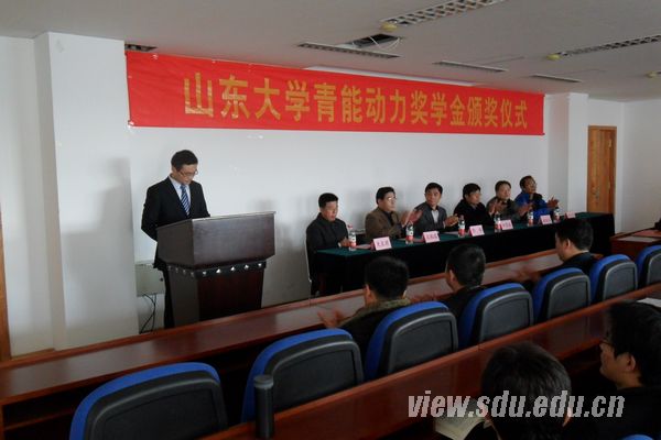 会上,郭伟就公司的发展历程、发展规划、发展目标、发展战略以及发展业绩与同学们展开交流。同时,他针对当前国际形势,分析了公司的发展潜力与发展空间。此外,他肯定了山大学子为公司发展做出的巨大贡献,鼓励学生到青能动力股份有限公司工作。他希望同学们要树立远大理想,更要脚踏实地的付出。田茂诚在讲话中代表学院向热爱公益、支持教育的青能动力股份有限公司表示感谢,同时希望获奖学生再接再厉,取得更大的辉煌;对公司的企业文化、发展理念以及发展业绩表示肯定;希望就业学生选择正确的择业观,鼓励学生到青能动力这一有发展潜力的公司就业。王瑞昌宣读山东大学青能动力奖学金获奖人员名单,与会领导为获奖学生颁奖并向其表示祝贺。能动学院2009级本科生李洪瑞代表获奖学生发言,向山东青能动力股份有限公司表示感谢,并保证今后更加努力学习,回报社会。