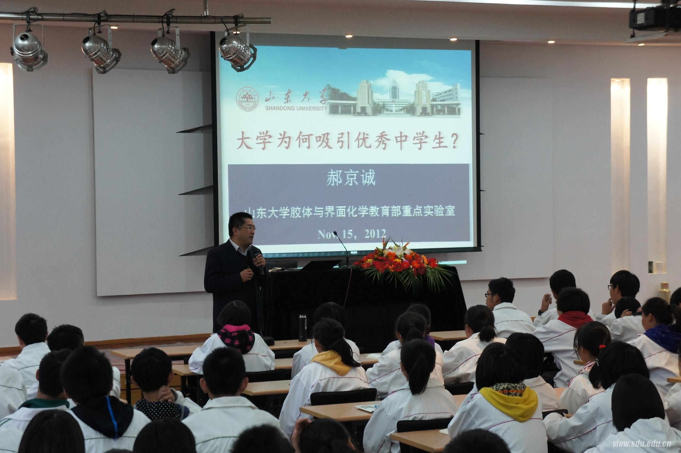 期间,长江学者特聘教授、国家杰出青年基金获得者、山东大学化学与化工学院博士生导师郝京诚为绍兴一中和学军中学的300余名师生作了题为《大学为何吸引优秀中学生》的报告。郝京诚教授向同学们介绍了大学的定位和价值、化学的魅力和应用等内容,让中学生们受益匪浅,激起了他们对大学生活的向往。