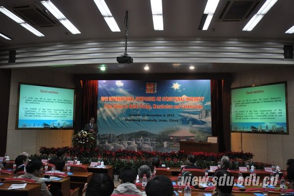 [本站讯]11月1日,2012国际结构完整性学术研讨会(ISSI2012)——从失效到更好的设计、制造和建造在山东大学举行。国际著名学者、美国华裔科学家、美国里海大学资深教授、现代断裂力学奠基人之一Geroge.C.Sih出席会议并发表主旨演讲。山东大学副校长张永兵出席会议并致辞。