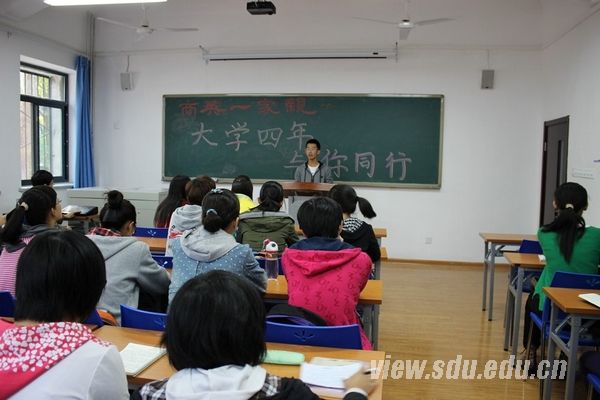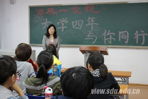 [本站讯]10月12日下午,外国语学院2012级商务英语班举行了主题为“如何有意义的度过大学生活”的班会。外语学院院长王俊菊以班主任的身份参会。