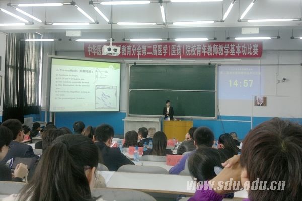 齐鲁医学部高度重视比赛,从山大第二届青年教师讲课比赛获奖教师中选出杨青代表学校参赛。杨青的教案内容全面、重点突出,在比赛中发挥稳定,多媒体课件、板书与教学语言配合相得益彰,获得在场专家和学生评委的一致好评,最终荣获佳绩。