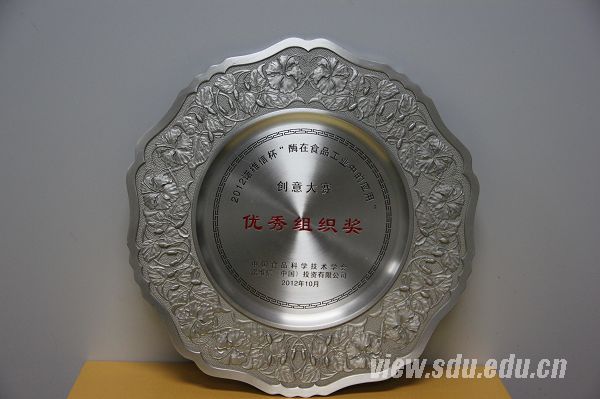 [本站讯]近日,生命学院硕士研究生付峰、郭峰、阴丽杰、郭玉川的项目《Levan多聚果糖功能性酸奶的制备》和林胜强、王兆宝、李金环、韩传刚的项目《利用米渣蛋白制备生物活性肽饮料研究》在2012届诺维信杯“酶在食品工业中的应用”创意大赛中均获二等奖,其他五个入围组队获得优秀奖,山东大学获得大赛优秀组织奖。