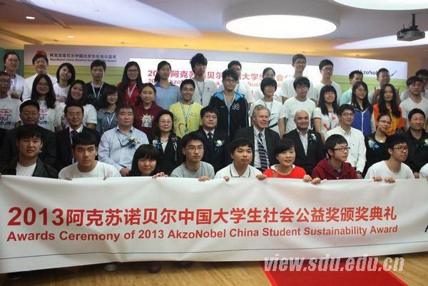 [本站讯]11月4日,2013年“阿克苏诺贝尔中国大学生社会公益奖”颁奖典礼在阿克苏诺贝尔中国上海总部举行,由山东大学学生社团自主申报的公益项目获得银奖一项、铜奖两项。其中,爱心协会的“棋牌社区行——关注留守儿童学前教育”项目获得银奖,国学社的传统文化进社区项目与演讲协会的“人大、南开、山大”三校联合动物保护辩论赛项目获铜奖。