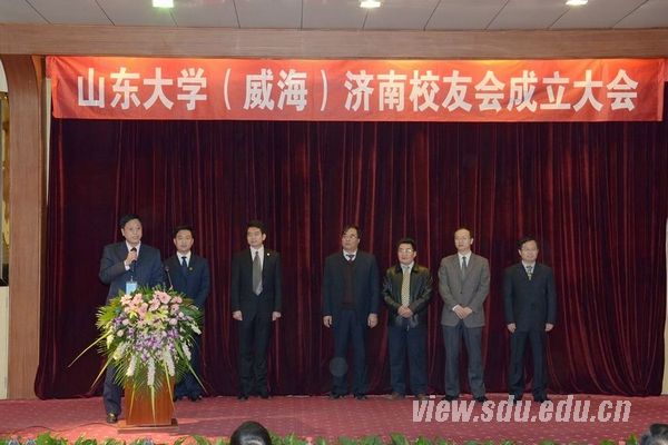 山东大学(威海)党委副书记、山东大学(威海)校友会名誉会长赵玉璞向校友会的成立表示祝贺,并表达了对校友会的期望与祝福。山东大学合作发展部部长王飞,山东大学(威海)北京校友会秘书长丛威等分别致辞。山东大学校友工作办公室副主任李湘军,山东大学(威海)合作发展规划处副处长兼校友工作办公室主任杨建华,山东大学(威海)北京、上海、南京、济宁、东营、青岛、菏泽、淄博等地方校友会代表与驻济校友代表100余人参加了大会。