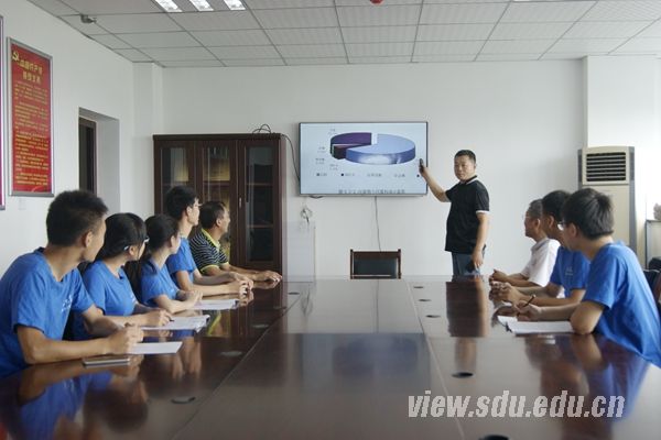 7月11日,团队在山东省水利科学院会议室举行会议,实践活动开始。7月12日至25日,团队走访了淄博市水资源管理办公室、市统计局、市水质检验中心、黄河水务局与市水利与渔业局等部门。每日实践开始前,队长周航介绍本日实践内容并分配任务。上午,部分成员走访各个部门,了解淄博市水资源开发利用、保护及行政执法等方面情况并收集相关数据资料,其他成员奔赴各个取样点取水样并化验;下午,周航主持组内例会,总结上午活动,交流心得,发现不足并及时提出改进方案。之后,成员们按照分工各自进行数据整理,书写活动日志,撰写新闻稿并联系媒体进行报道等。此外,团队还在多处发放调查问卷,了解淄博市民对实现水资源可持续利用的看法,并对相关人员进行采访。