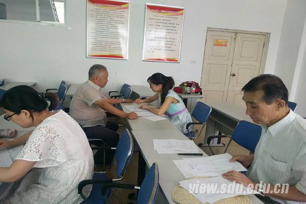 在阳光100社区居委会的宣讲室,李怡进行了AD健康教育宣讲活动,着重讲了老年性痴呆的预防措施,强调了随着年龄增长记忆力减退的现象并非必然,宣讲科学而又通俗易懂,赢得了老人们的热烈掌声。随后,实践队和齐鲁医院医护人员应用MMSE量表对老人们进行了AD普选,量表结果由李怡带回医院统计分析,然后联系有问题的老人。最后,实践队请部分老人填写了AD影响因素的调查问卷,结果会和随后几天其他社区的问卷一起进行统计分析。至此,“仁医起航”实践队随齐鲁医院进行的社区活动圆满结束。