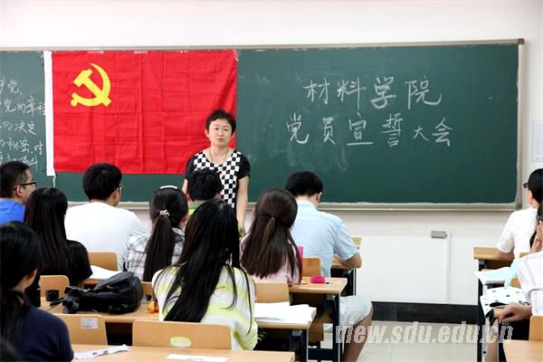 [本站讯]6月24日,材料科学与工程学院党员宣誓大会于兴隆山校区举行,学院党委副书记王丽君出席会议。本次大会由2014级党员张烨主持,材料学院部分党员、预备党员及入党积极分子参加。