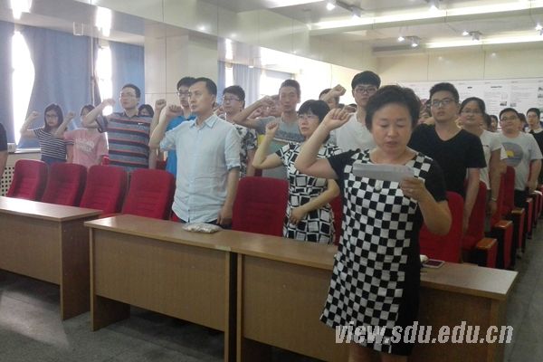[本站讯]6月20日,材料科学与工程学院毕业生党员重温入党誓词大会在千佛山校区召开,院党委书记秦承涛、党委副书记张强、王丽君及2016届全体毕业生党员参加了此次会议。