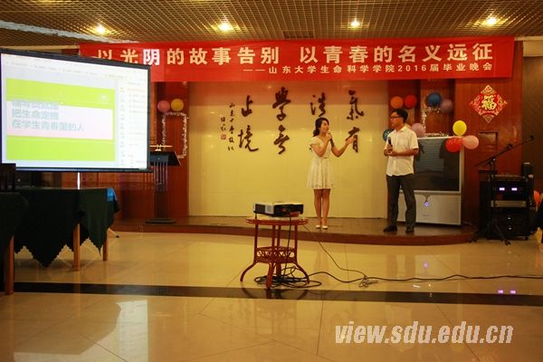 [本站讯]6月20日,生命科学学院 “以光阴的故事告别,以青春的名义远征”2016届毕业晚会举办。生命学院党委书记曲刚、副院长郭卫华、副书记韩春岫应邀出席晚会 。