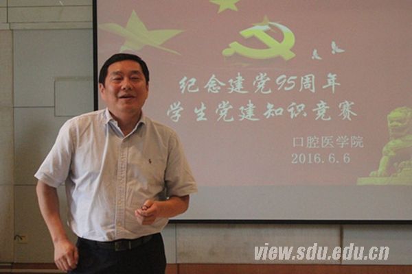 [本站讯]6月6日,口腔医学院“庆祝建党95周年”党建知识竞赛于趵突泉校区举行。口腔医学院党委书记赵华强,党委副书记吕光平等出席活动并担任本次竞赛评委。