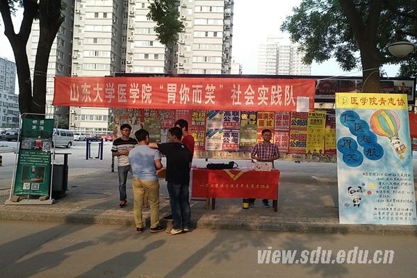 [本站讯]6月4日至5日,医学院“仁医起航”社会实践队联合“胃你而笑”在趵突泉校区举办了为期两天的宣传活动,活动旨在普及阿兹海默症的防治和胃病的相关知识。