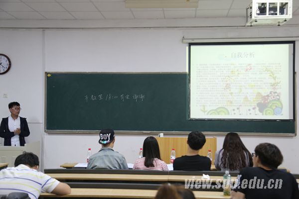 [本站讯]5月19日,职业生涯规划大赛答辩会在软件园校区举办。参赛者们按照抽签决定的顺序依次上台,通过生动具体的讲解和精彩丰富的PPT进行答辩。 首先,选手们分析了自己职业兴趣测试的结果,讲解了其中自己认为准确的、不准确的地方,还从性格、爱好等方面介绍了对自己的认识以及对自己所生活的家庭环境、学校环境的分析。然后,他们讲述了自己对大学生活的总结与计划,不仅介绍了自己进入大学后所担任的职务、经历的磨炼,还讲述了自己在未来几年的计划。除了短期计划,还有中期、长期计划,条理清晰。他们表示,在进入山大学习之后,他们经历了许多,学会了许多,也增长了见识,但是要达到他们自己的目标,还有很大一段距离,在未来的日子里,他们也会严格按照自己的计划,不断提高、改善自己。接着,他们讲解了自己将来想要从事的职业,不仅介绍了这一职业未来的良好发展前景、对社会发展的重要性,还讲述了想要从事这一职业所必须具有的一些良好素质,以及他们想要并且能够从事这一职业的原因。另外,还有选手将自己的职业规划与中国梦联系到了一起,表示不管从事何种职业,我们都应不断探索进步,为国家的发展作出贡献,促进中国梦的实现,令现场的各位同学都深有感触。 经过这次职业生涯规划大赛答辩会,同学们不再像从前一样懵懵懂懂,只知道埋头学习,而是对自己的未来有了很好的认识,为自己的人生发展做好了规划。