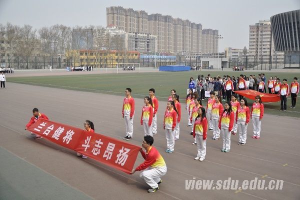 下午1时,运动会开幕式正式开始。四名旗手护送院旗入场,他们手擎旗帜,步伐坚定。伴随着《运动员进行曲》的歌声,裁判员方阵和各专业方阵依次入场。各年级各班代表队组成的方阵,依次入场展示。同学们根据各自学科和专业的特色设计了独特的口号和展示方式。此外,即将毕业的12级本科生同学们的出场也为本次运动会增添了别样的色彩,整齐的步伐、响亮的口号迎得了同学们的热烈掌声。方阵展示完毕后,张丽昙致开幕词,本科生李孟秋和高栋分别代表裁判员、运动员庄严宣誓,运动会拉开序幕。