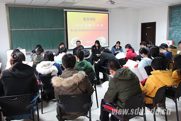 [本站讯]12月28日,数学学院举行“师生温馨下午茶”第二届大学生青春读书会获奖征文作者座谈会。数学学院党委副书记李勇出席了本次活动,座谈会由2012级辅导员郑柔澄主持。