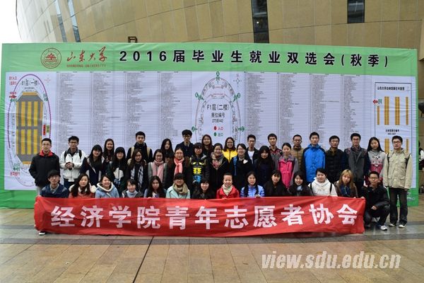 [本站讯]11月7日,经济学院青年志愿者协会组织本院2013级、2014级共41名志愿者,前往中心校区秋季双选会担任引导与服务志愿者。本次双选会由山东大学学生就业创业指导中心主办,面向山大内外应聘者,是山东大学传统校级活动之一。