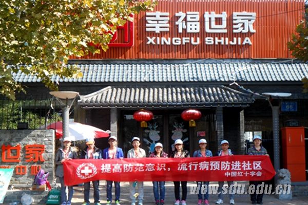 [本站讯]10月27日上午,山东大学红十字会在济南市幸福世家日间照料所举办“流行病预防进社区”科普讲座,宣传夏秋季常见流行病预防的相关知识。红十字会的11名公卫学院队员参加活动。