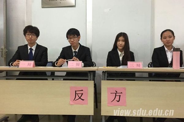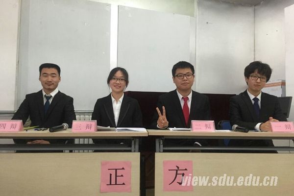 决赛中,“脸王”辩论队与济南大学交锋,围绕“网络社交软件拉进还是疏远了人与人之间的关系”这一辩题展开讨论。山大持反方“疏远”,从网络社交软件的商业性、虚拟性等角度论证疏远的过程;济大持正方“拉进”,从社交软件优点出发,引入“强关系”和“弱关系”两个角度分析社交软件对人与人之间关系的拉进。自由辩论中,邢国鑫选手发言积极,带动团队配合,争得占优局势。观众提问环节,面对三位观众的连续发问,四位辩手处变不惊,从容应对,赢得观众好评。最终,山东大学代表队获得本次比赛冠军,邢国鑫获最佳辩手荣誉称号。
