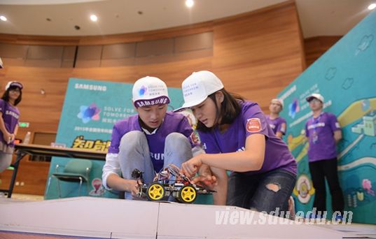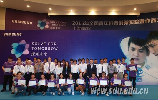 [本站讯]10月12日,“SOLVE FOR TOMORROW 探知未来2015年全国青年科普创新实验暨作品大赛”上海赛区复赛在上海科技馆拉开帷幕。山东大学信息学院“山魂”队和“海韵”队获复赛资格赴上海参赛,经过激烈比拼,“山魂”队在智能交通组获得冠军,并将在11月中下旬赴北京角逐全国总冠军。